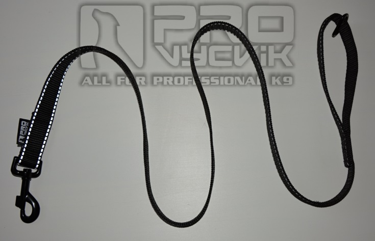 Vodítko je osazeno karabinou - zatížení při přetržení: 230 kg , povrchová úprava černá úprava (elektroforéza) , dále černým kovovým polokroužkem stéjné úpravy.